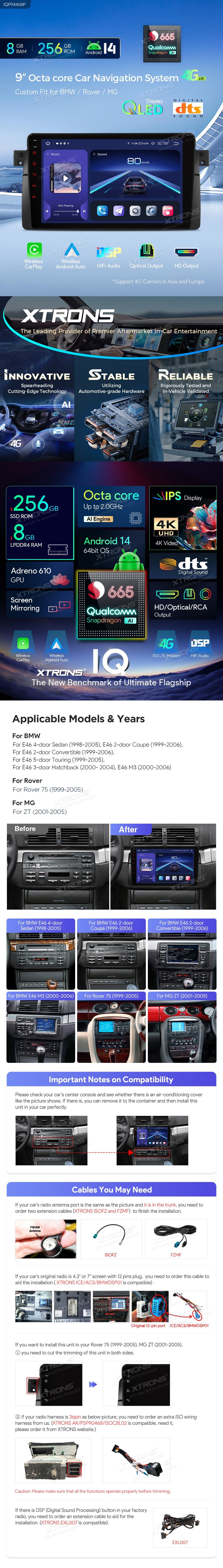 Pokud chcete tuto jednotku nainstalovat do Roveru 75 (1999-2005), MG ZT (2001-2005), musíte ořezat ořezávání této jednotky na obou stranách. Také, pokud je váš rádiový svazek 36pin, musíte si od nás objednat další kabelový svazek ISO. (XTRONS AK/PSP9046B/ISOCBL02 je kompatibilní) Upozornění: Před ořezáním se ujistěte, že všechny funkce fungují správně.