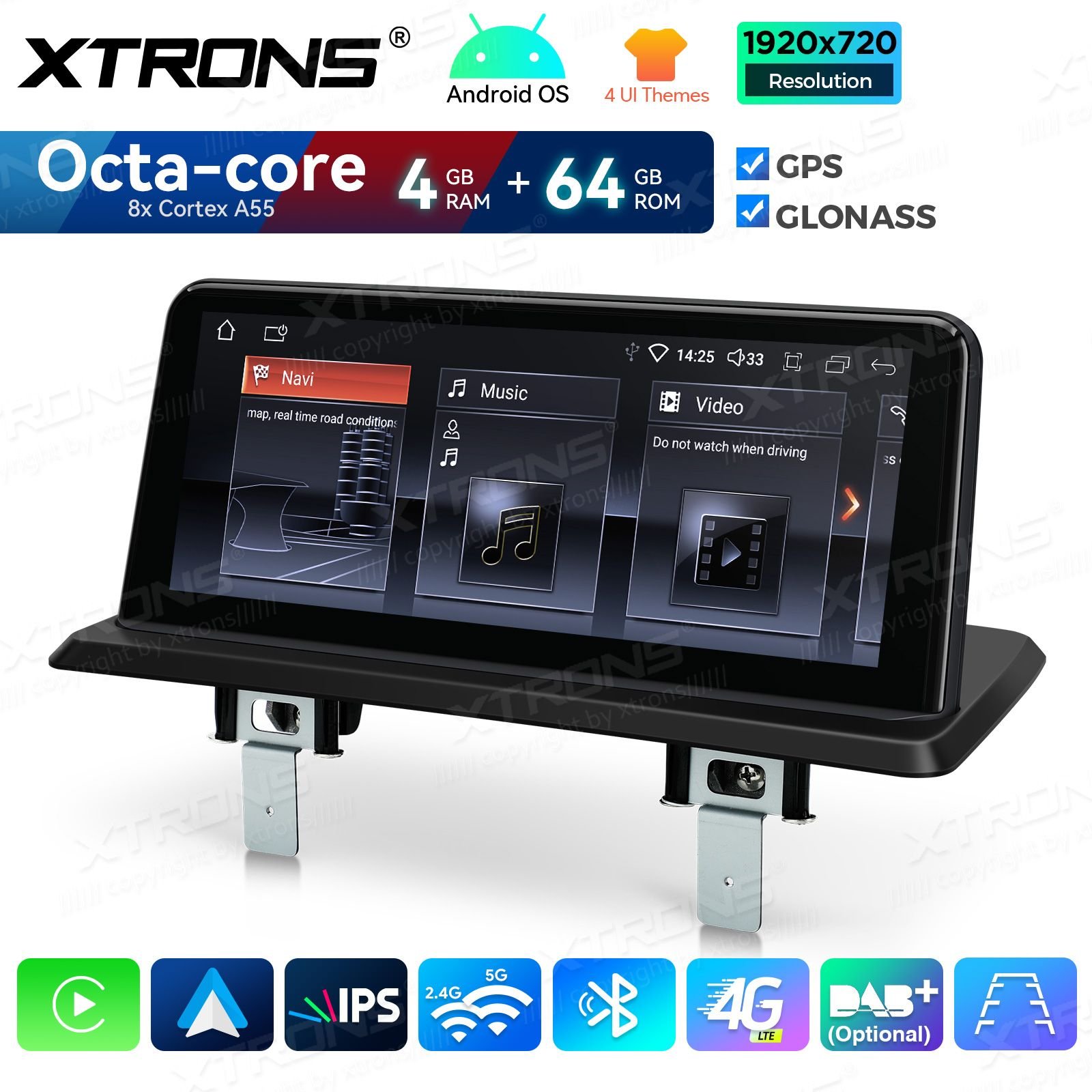 - Voliteľné príslušenstvo XTRONS: DVR, kamera, OBD, DAB, TPMS, mikrofón
