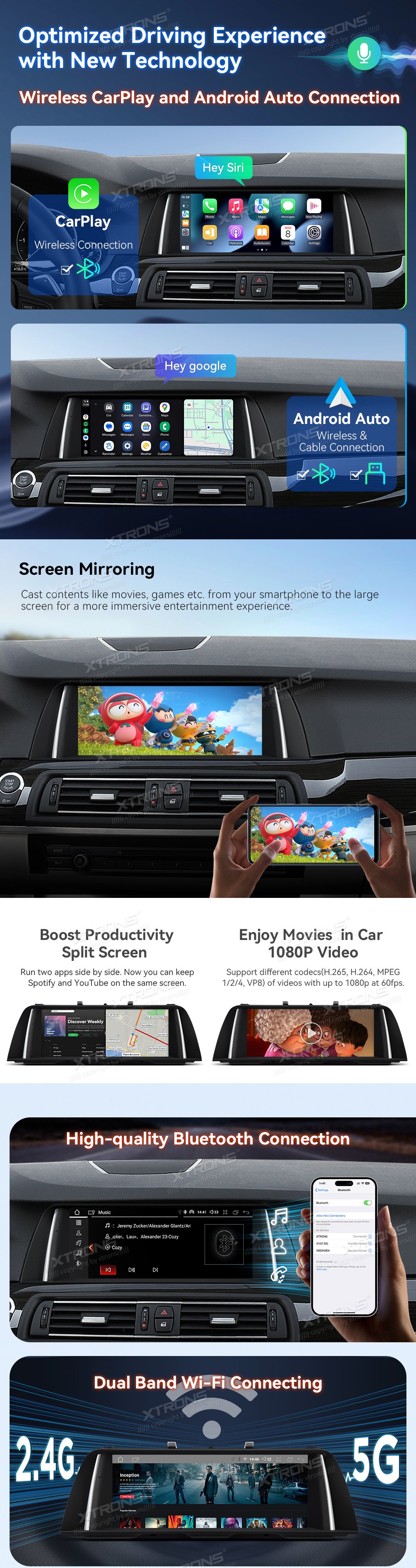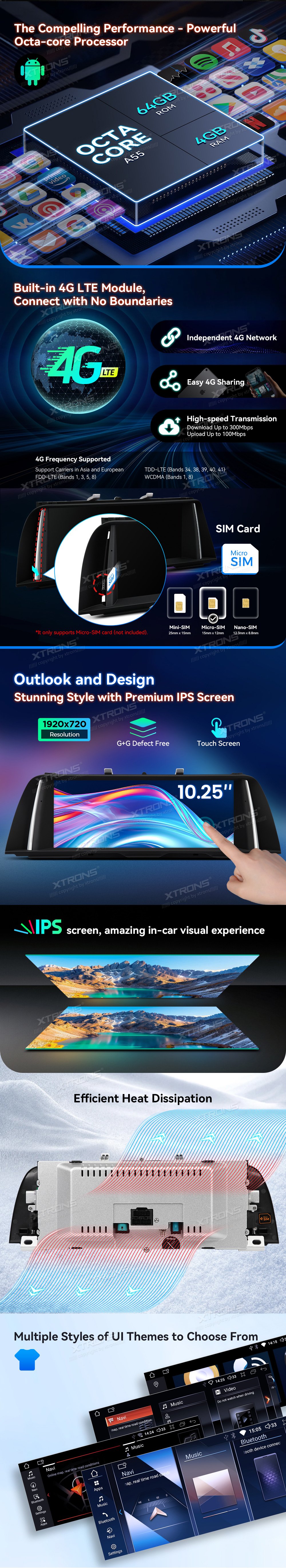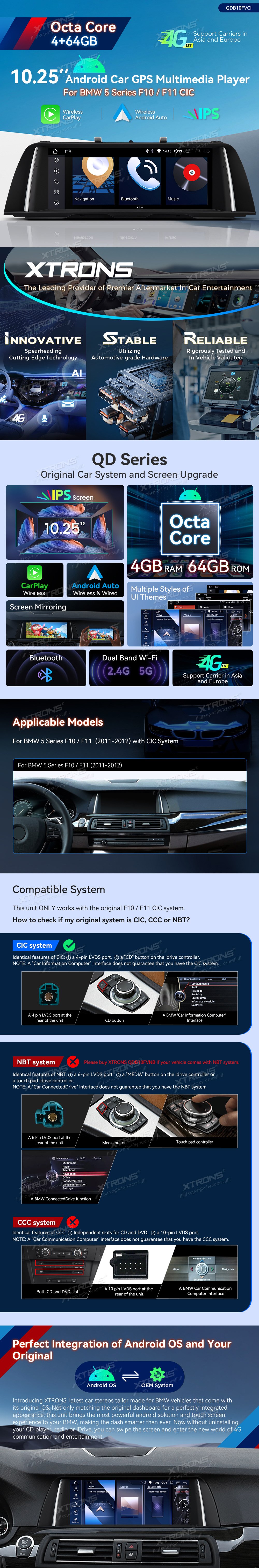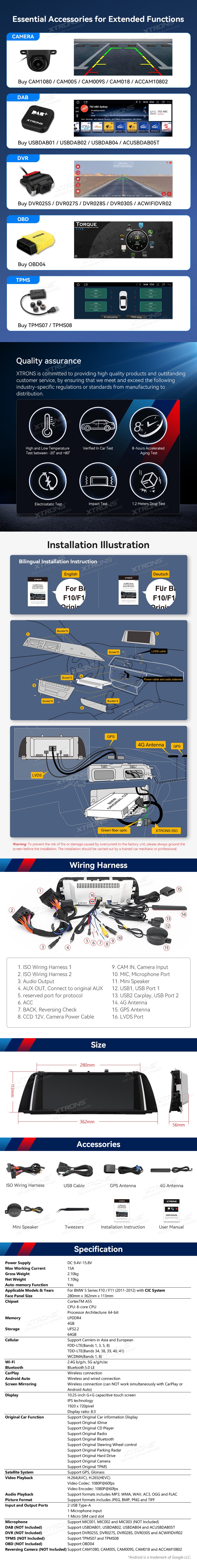 * Optimalizovaný systém operačního systému Android *Právní systém a upgrad obrazovky *Perfektní integrace systému Android OS a OEM * DDR4 4GB RAM + 64GB ROM * Modul 4G LTE - Podpora Dopravce v Asii a Evropě *10.25-palcový 1920 * 720 IPS G+G dotyková obrazovka * Efektní odvod tepla *Množité styly témat UI *Společnost Built-In Wireless CarPlay a bezdrátový a kabel Android Auto *Screen zrcadlení *Split-Screen & 1080p Video Systémové požadavky * Vysoce kvalitní připojení Bluetooth *Built-in Dual Band WiFi (2/4.0.0Ghz) *GPS Navigace *Podpora AHD kamery * Udržujte originální iDrive a jiné funkce -iDrive Systém, Zesilovačový systém -Pravná Displej Ohledně Informací O Voze -Originální rádio a CD přehrávač -Backupní displej kamery, Bluetooth - Funkce řízení kol *Okaždý přístup k režimu reversing *Kvalitní záruka *Rozšířené funkce pro uspokojování vašich potřeb (volitelné) -DAB, DVR, OBD, Fotoaparát, TPMS