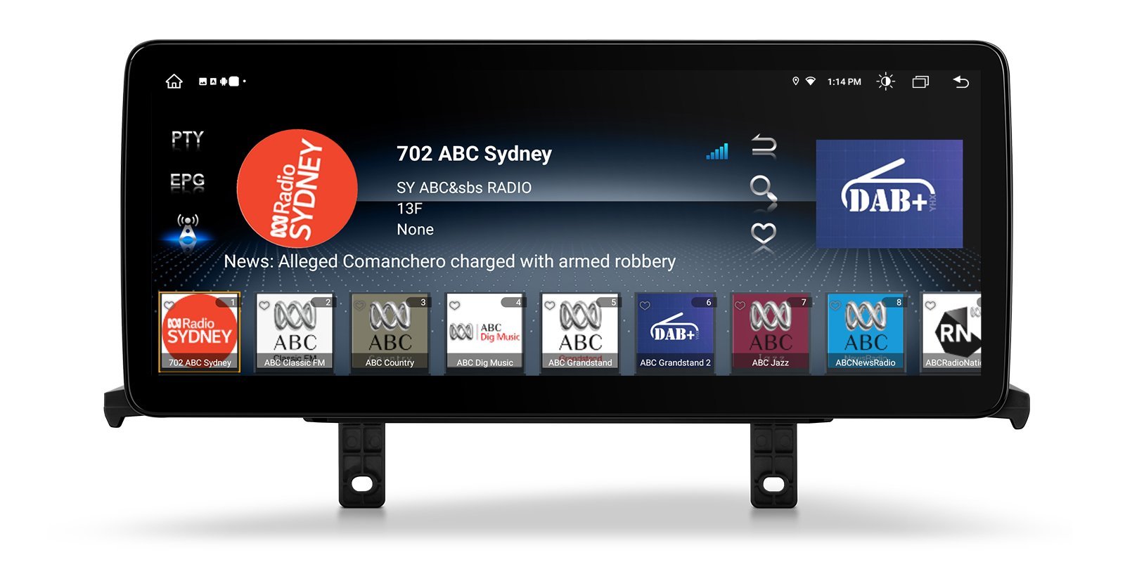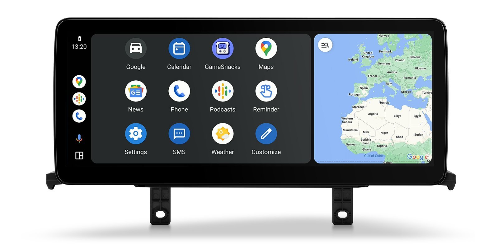 Autorádio pro vozy BMW řady 1 a 2 Cabrio (F20, F21, F23)- 12,3" IPS dotykový displej, Android OS, osmijádrový procesor, operační paměť 4GB, vnitřní paměť 64GB, DSP, GPS, Wifi, Bluetooth, RDS, 4G, USB, slot pro SD kartu, CarPlay, AndroidAuto.