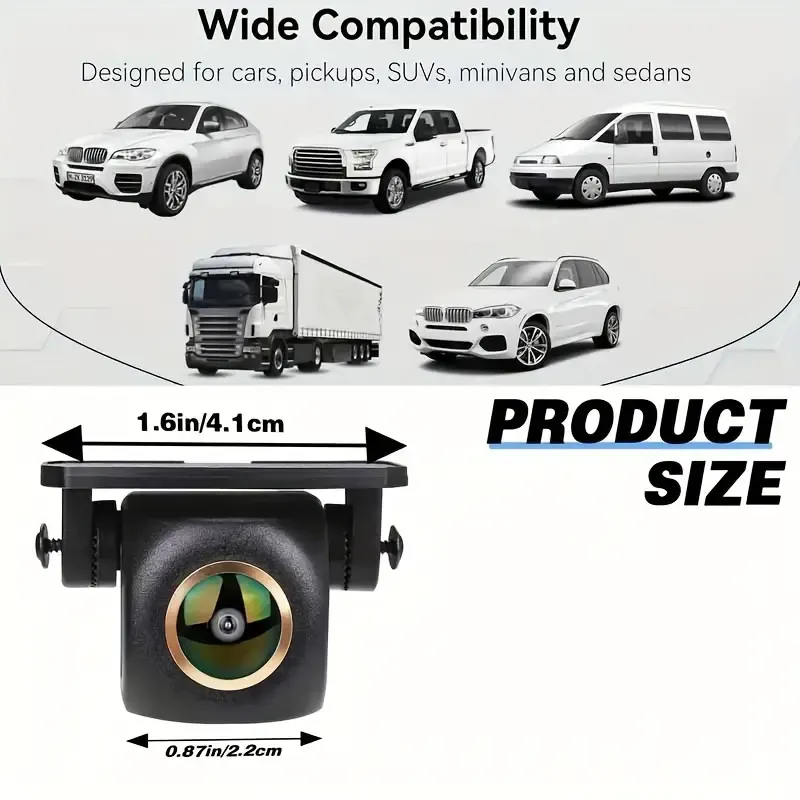 Či už jazdíte na SUV, nákladnom aute, karavane, obytnom vozidle alebo dodávke, táto dynamická zadná kamera vám zaistí dokonalý prehľad o priestore za vozidlom. S ultraširokým objektívom typu rybie oko so zorným uhlom 170° eliminuje mŕtve uhly a poskytuje plný prehľad o okolí – ideálne na manévrovanie v stiesnených priestoroch alebo cúvanie s prívesom.