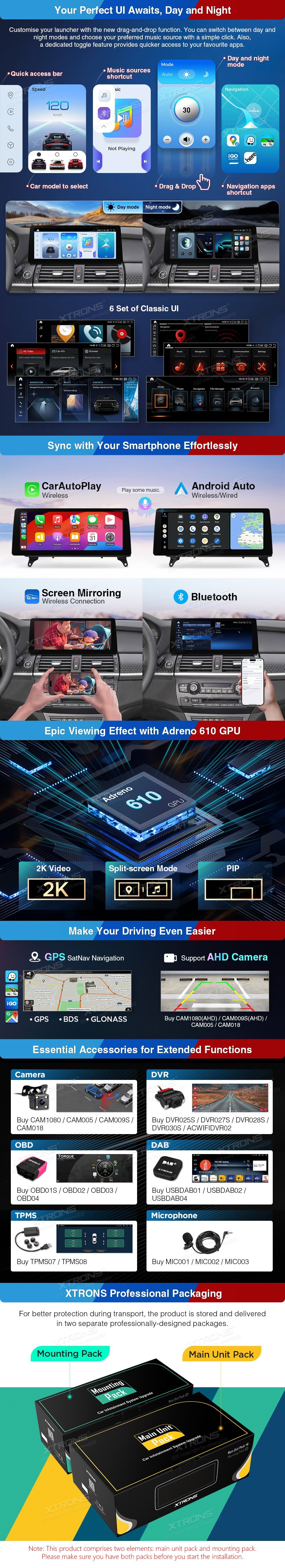 Autorádio pro vozy BMW X5 E70 / X6 E71 CCC - 12,3" HD dotykový displej IPS, Android OS, osmijádrový procesor, operační paměť 8GB, vnitřní paměť 128GB, DSP, GPS, Wifi, Bluetooth, RDS, 4G, USB, slot pro SD kartu, CarPlay, AndroidAuto
