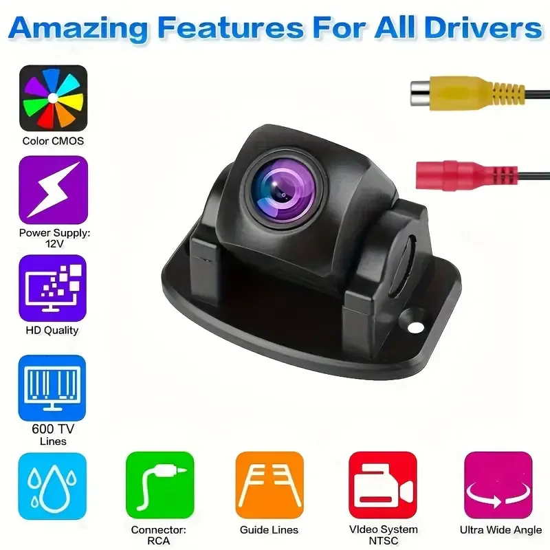 Univerzální Zadní HD kamera s širokoúhlým záběrem 170° a plnobarevným nočním viděním. Vodotěsná pro auta, pick-upy, SUV a dodávky. Snadná instalace, CMOS snímač, dynamické vodící čáry.